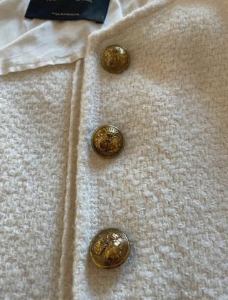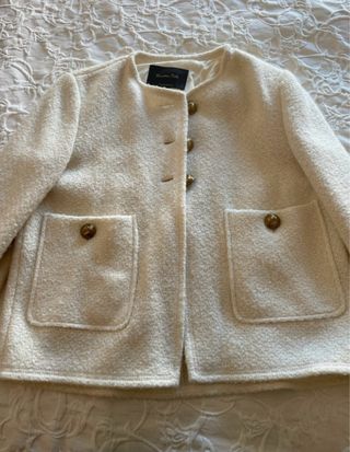 Blazer chaqueta de Massimo Dutti en color blanco roto con detalle de bolsillos y botones centrales dorados. Super suave y calentita de lana. Elegante. Talla XS