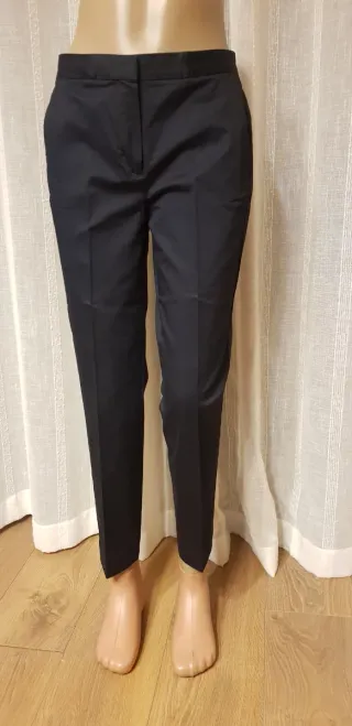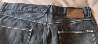 Pantalones de Massimo Dutti, talla (40), color verde oliva. Son de un tejido que parece resistente y tienen un corte elegante. - Cierre con cremallera y botón. - Bolsillos delanteros. - Bajo con detalle. - Muy cómodos - 97% Algodón y 3% Elastano Hecho en Marruecos Ver las medidas en las fotos Las fotos forman parte de la descripción