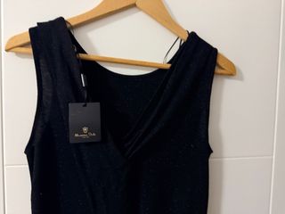 Camiseta de manga larga con un diseño moderno y favorecedor. Su tejido suave la hace muy cómoda para el día a día. - Espalda-descubierta/drapeado. - Detalle de lazada en la espalda. - Corte holgado. Camiseta de Massimo Dutti original con espalda drapeada en color gris oscuro. Tiene una tira de cuero cerrando el escote de la espalda (espalda algo descubierta). Talla XS de manga larga. Composición 85% viscosa 15% lana. Casi sin uso. Se hacen envíos a cargo del comprador.