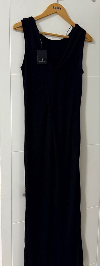 Vestido de tubo elegante en color negro. Ideal para ocasiones especiales. - Diseño sin mangas. - Tejido con brillo sutil.