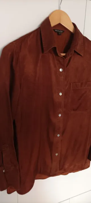 Elegante blusa de Massimo Dutti en color marrón. Un básico versátil para cualquier ocasión. - Cuello camisero. - Cierre de botones. - Bolsillo en el pecho. - Puños abotonados.
