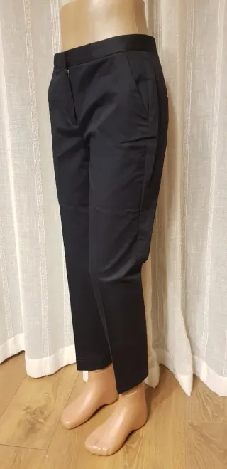 Elegante traje de pantalón de Massimo Dutti. - Chaqueta Talla 40, con un botón. - Bolsillo de solapa. - Pantalón Talla 38. - Diseño de raya diplomática. Sólo venta en pedidos mínimo de 60€.