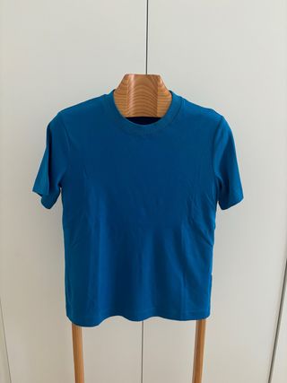 Camiseta de la marca Massimo Dutti, en color azul. Nueva. Talla S. Medidas: 46cm de axila a axila. 61cm de largo.