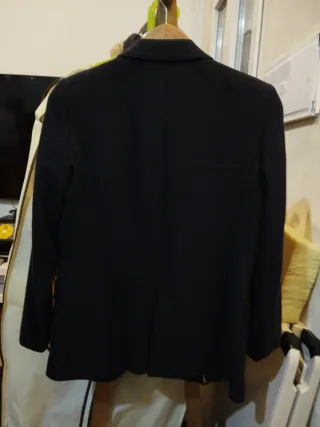 Americana de la marca Massimo Dutti. Es muy elegante y buena calidad. Al ser azul marino tiene los típicos signos de desgaste pero nada importante. Se aprecia en las fotos. - Diseño clásico y elegante. - Un botón frontal. - Dos bolsillos de solapa.