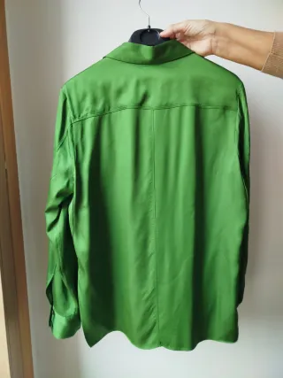 Elegante camisa de Massimo Dutti en un vibrante color verde. Su diseño clásico la hace perfecta para diversas ocasiones. - Tejido satinado con caída. - Cuello camisero. - Cierre de botones. - Puños abotonados.