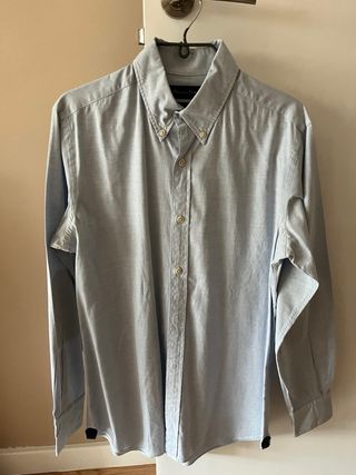 Camisa de vestir de Massimo Dutti en color azul celeste. Talla S, 38. - Cuello tipo button-down. - Cierre de botones. - Tejido de alta calidad. Entrega en mano o se envía a toda España.