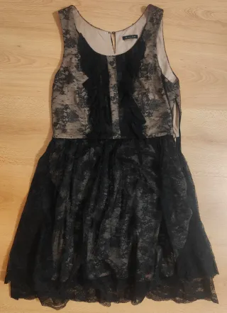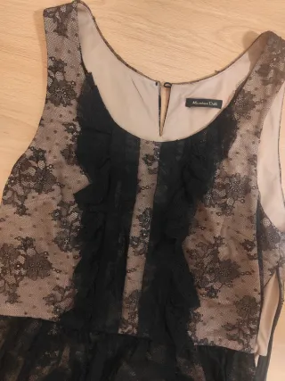 Elegante vestido de Massimo Dutti con un delicado diseño de encaje. - Diseño sin mangas. - Detalle de volantes en la parte frontal. - Forro interior en tono beige.