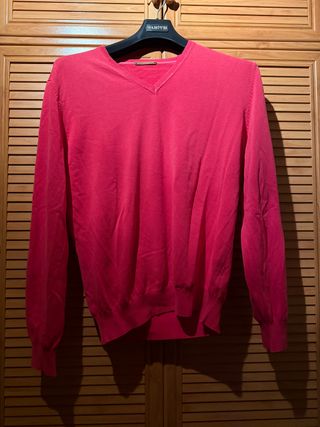 Jersey de punto fino de Massimo Dutti. - Cuello en pico. - Manga larga. - Bajo y puños acanalados.