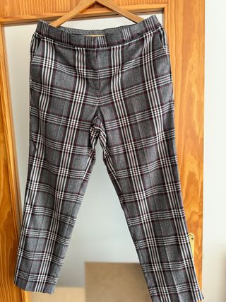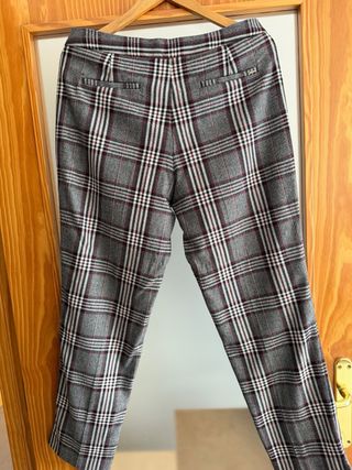 Pantalón de vestir con estampado de cuadros. en tonos negro, gris, granate y negro. Nuevos . Con forro interior. Pitillos. - Diseño de Massimo Dutti. - Corte recto medidas: cintura 42 cm, cadera 56 cm, largura 98 cm composición: 50% lana, 31% viscosa, 15% poliamida, 2% poliéster.
