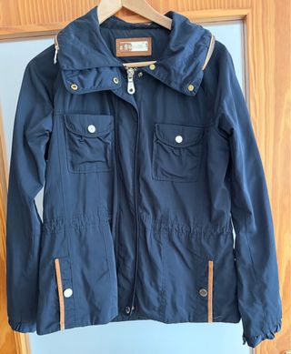 Cazadora ligera de Massimo Dutti, perfecta para entretiempo. - Diseño con capucha. - Cierre de cremallera. - Bolsillos frontales con solapa. - Cintura ajustable con cordón. - Detalles en los bolsillos y puños. medidas: ancho 47 cm, entre hombros 49 cm y largura 49 cm