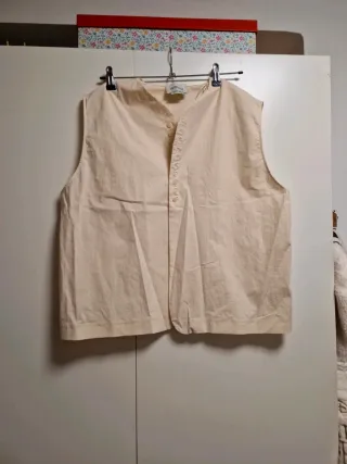 Chaleco de la marca Massimo Dutti en color beige. Un básico versátil para cualquier armario. - Diseño sin mangas. - Cierre de botones. - Cuello redondo. Es oversize daría para mas talla