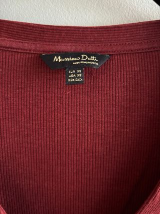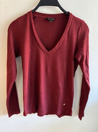 Camiseta Massimo Dutti cuello pico granate