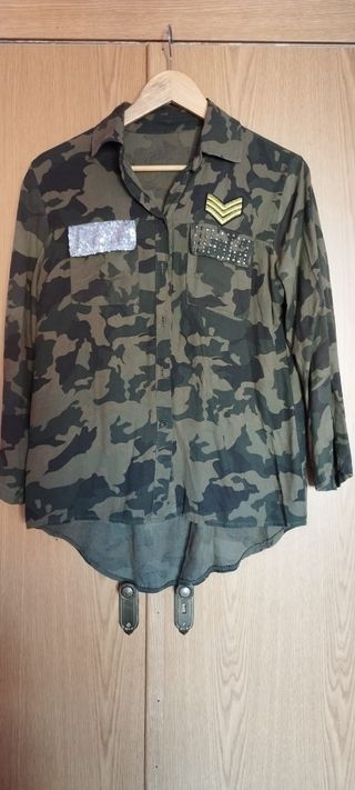 Camisa efecto militar de mujer semitransparente. Talla S/M