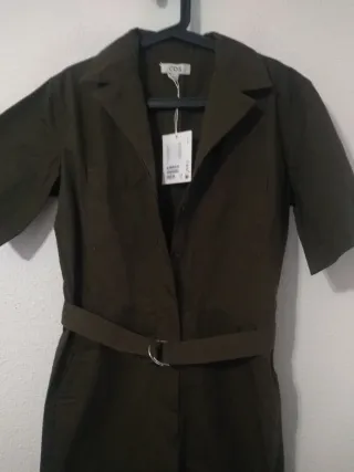 Mono largo de la marca COS en color verde militar. Presenta un diseño elegante y moderno. - Manga corta. - Cuello solapa. - Cinturón a juego con hebilla. - Cierre de botón. - Bolsillos laterales.