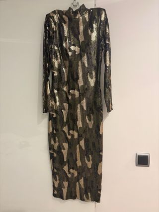 Vestido midi lentejuelas Zara militar