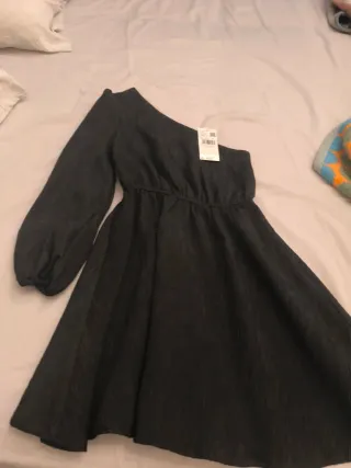 Vestido de Mango para niña en color negro. Diseño de un solo hombro con manga larga abullonada y falda con vuelo. - Tejido con textura. - Cintura elástica.