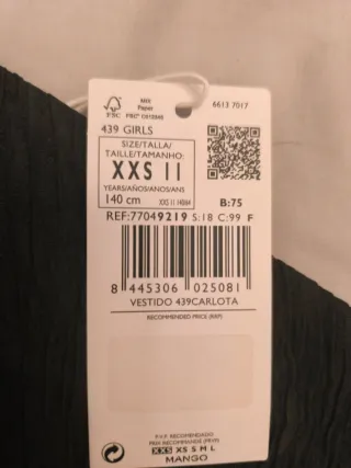Vestido negro Mango niña talla 10