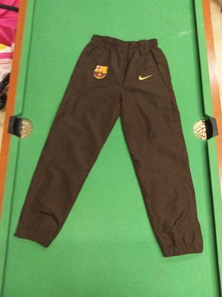 Pantalón deportivo de niño del FC Barcelona, de la marca Nike. Está en buen estado. - Diseño elegante y deportivo color marrón, transpirable por dentro y con cordones y cremallera. - Talla xs - Perfecto para entrenar o usar a diario.