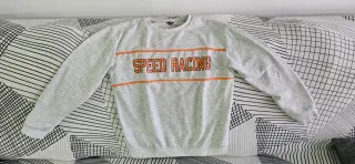 Chándal infantil de la marca Kiabi con un diseño moderno, en perfecto estado, poco uso. Color tirando a blanco con estampado frontal SPEED RACING en naranja.