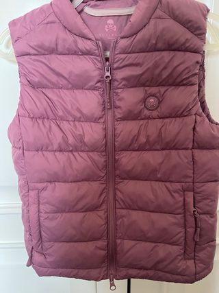 Chaleco acolchado de la marca Scalpers en color lila.Talla 12 años( 152cm) - Cierre de cremallera frontal. - Dos bolsillos laterales con cremallera. - Detalle de logo circular en el pecho.