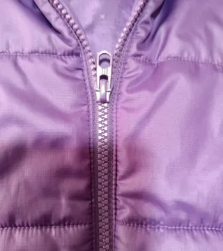 Chaqueta acolchada reversible para niña, con un diseño moderno y detalles llamativos. - Exterior negro brillante. - Interior y ribetes en color rosa y lila. - Cremallera frontal. - Bolsillos laterales con cremallera. Es de 13 -14 años y queda bastante bien para otras edades.