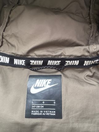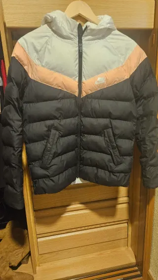 Abrigo acolchado de la marca Nike, perfecto para el frío. - Diseño con capucha. - Cierre de cremallera. - Bolsillos laterales con botón.