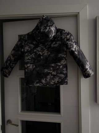 Abrigo de Columbia para niño con estampado de camuflaje. - Diseño en tonos negros y grises. - Comprado en Nueva York.