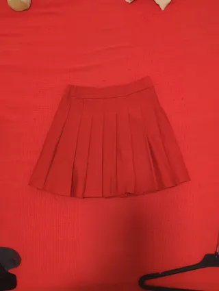 Falda de tablas de color rojo con forro interior de pantalon. Tela cálida Es una prenda versátil y con un diseño clásico. - Diseño de tablas. - Cintura definida.