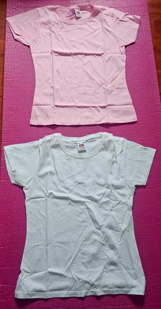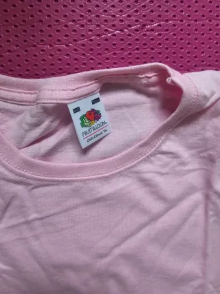 Camiseta de manga corta para niña. SON TALLA 12- 13 PERO DAN POCA TALLA PARA 10-11 2.5€ Cada una tengo 3 blancas y 7 rosas ...Si te llevas todas 20€ Las compré para estampar y me sobraron - Marca Fruit of the Loom. - Color rosa.