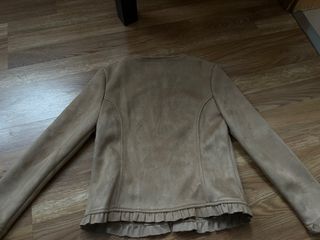 Chaqueta Mayoral para niña en color beige claro, talla 10 años (140 cm). Tejido suave efecto ante, cómoda y ligera, ideal para entretiempo. En buen estado