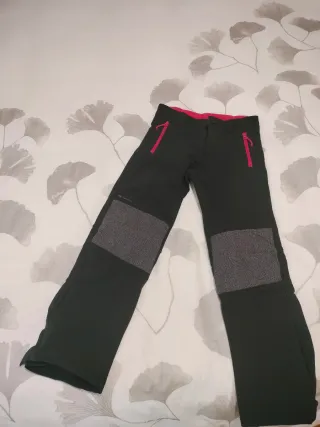 Pantalón de montaña para niña, ideal para actividades al aire libre. Talla 10 Muy buen estado. - Diseño con parches reforzados en las rodillas. - Cremalleras de color rosa en los bolsillos. - Cintura con cierre de botón y cremallera.