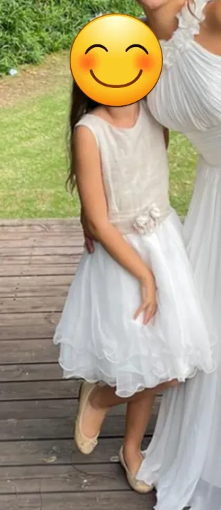 Precioso traje de niña, ideal para eventos especiales. - Diseño moderno y elegante. - Acabado en tonos beige y blanco. - En este caso fue para llevar las monedas de Una boda. Un solo uso, completamente Nuevo. - Talla niña 10. Lo uso una niña de 9 años