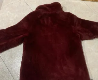 Chaqueta de borreguito para niña de Zara. Con capucha y bolsillo delantero. -Talla: 18-24 meses - 2 años - Material suave y cálido. - Diseño con estampado de florecitas en el bolsillo y el forro de la capucha. - Cierre de cremallera.