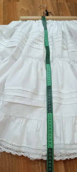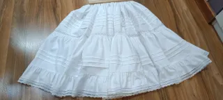 Traje fallera niña talla 5 años, falda rosa asalmonada y corpiño siglo XVIII en blanco. Largo de falda 77 cm. Y lleva un bolsillo en el lado. Corpiño nuevo sin estrenar. De sida a cintura 16 cm Largo pala 32, largo de hombro a cintura 30 cm, cintura 69 cm m , ancho pecho 61 cm, largo manga 37 cm