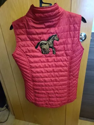 Chaleco acolchado de color rojo, ideal para niñas Talla 10 años . Perfecto para actividades al aire libre. Ecuestre montar a caballo - Diseño acolchado. - Cuello alto. - Cierre de cremallera frontal. - Bolsillos laterales.