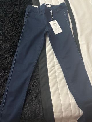 Pantalones vaqueros pitillo para niña de Zara. Tienen un diseño moderno con rotos y bajos deshilachados. T. 11-12 - Tiro alto con cintura elástica. - Efecto desgastado. - Estilo desgarrado en rodillas y bajos.