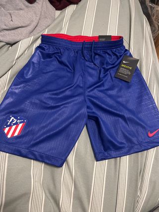 Calzonas deportivas del Atlético de Madrid. Talla 12-13 de niño o L de niño - Tejido transpirable. - Cintura elástica con cordón. - Escudo del club en el lateral. -Con etiqueta