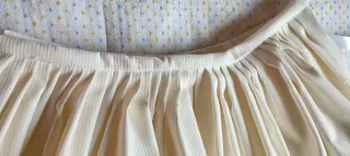 Falda tradicional de Baturra para niña, indumentaria tradicional aragonesa - 55cm de largo de falda - Tejido blanco roto,color champán,beige clarito ,algodón con algo de fibra adamascada - Adorno de zigzag en color granate. - Dobladillo inferior en color rosa con Aldar del mismo color _ más en mi perfil