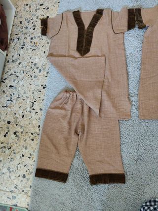 Conjunto de ropa para bebé, ideal para eventos especiales. - Diseño con detalles en marrón de terciopelo.Para el entretiempo va genial. - Tejido ligero y cómodo. -Una sola puesta - Son dos de niñas y un conjunto de niño que va a juego en el pantalón. Las medidas de alto del conjunto niño es (63 cm parte d arriba y pantalón 45,5cm); conjunto niña( uno mide 65,5cm y el otro mide 61 cm)