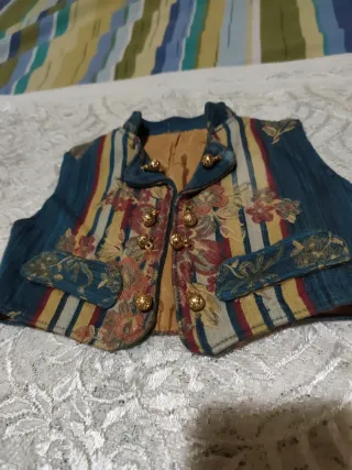 Precioso chaleco para bebé con un diseño fallero tradicional. Ideal para celebraciones. - Tejido con bordados detallados. - Abertura frontal.