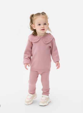 Precioso conjunto de punto para bebé, ideal para cualquier ocasión. - Tejido suave y confortable. - Diseño clásico y elegante. - Incluye jersey y polainas. - Talla 3 meses