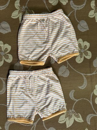 Conjunto de dos pantalones cortos a rayas para bebé. - Cintura elástica. - Dobladillo en contraste. Talla de 0 a 1 mes Son los dos