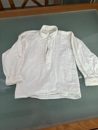 Camisa blanca para bebé de 2 años aprox., ideal para vestir de fallero. Talla 10. - Cuello camisero. - Cierre de botones. - Manga larga.