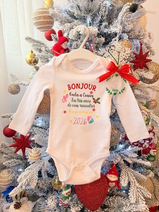 Body de manga larga para bebé con un divertido diseño. - ¡Hola Abuelitos! Voy de camino, nos vemos en 2026 - Estrellita sonriente y detalles navideños. - Cierre a presión en la parte inferior.