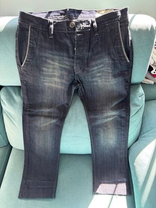 Conjunto de camiseta y pantalón vaquero -talla L - Camiseta de manga corta con cuello tipo polo puesto pocas veces. - Pantalón vaquero elástico de corte recto puesto dos veces.