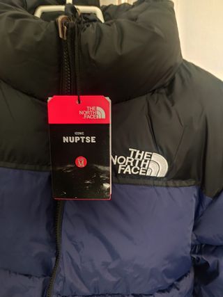 Chaqueta acolchada The North Face con un diseño bicolor. nueva con etiquetas - Parte superior en color negro. - Parte inferior en color azul marino. - Cuello alto. - Cierre de cremallera frontal.