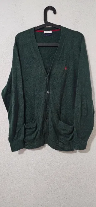 Cárdigan de punto de la marca Cortefiel en color marrón. Presenta un diseño clásico con cuello redondo y cierre de botones. Talla L da talla para M - Dos bolsillos de parche en la parte superior. - Dos bolsillos de parche en la parte inferior. - Puños y bajo de canalé.
