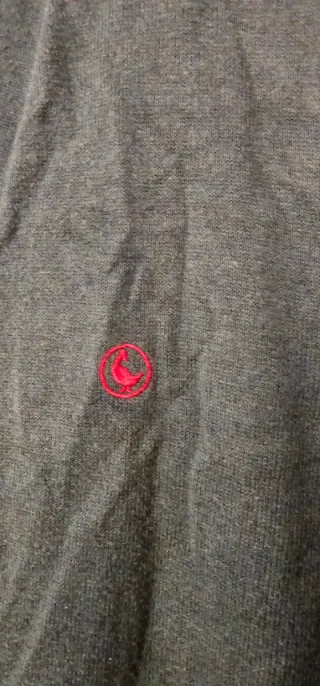 Jersey de manga larga con cuello en pico. Talla L - Diseño liso. - Pequeño logo de la marca en el pecho.