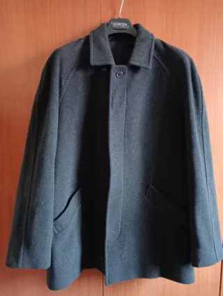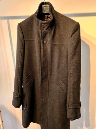 Abrigo de hombre de la marca Zara en color gris. Presenta un diseño moderno y elegante. - Cuello alto con cierre de botones. - Cierre frontal de botones. - Bolsillos laterales. - Puños ajustables con detalle de botones.