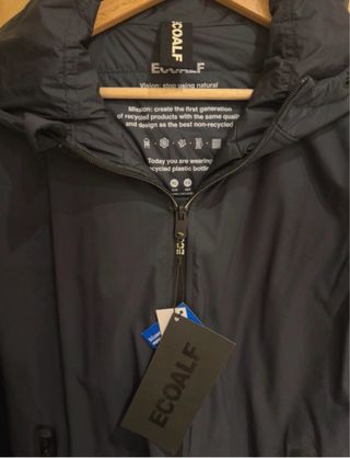 El jersey de punto Bimi está hecho principalmente de poliéster reciclado. Su diseño combina las mangas de punto con otra parte acolchada, haciendo que sea una chaqueta atemporal perfecta para cualquier ocasión. Esta nuevo, con etiqueta. Tejido principal: 100% poliéster reciclado Segundo tejido: 65% poliéster reciclado/ 35% cotto orgánico Fit regular 100% poliéster reciclado Bolsillos frontales Canalé en los puños y en el cuello Cierre frontal con cremallera Logo ECOALF en la manga Vegano